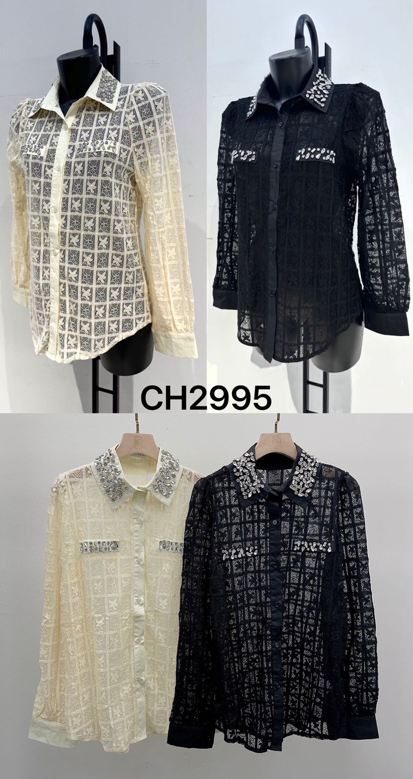 CAMICETTA IN PIZZO CON COLETTO MOLTO PARTICOLARE IN ZIRCONI ARGENTATI