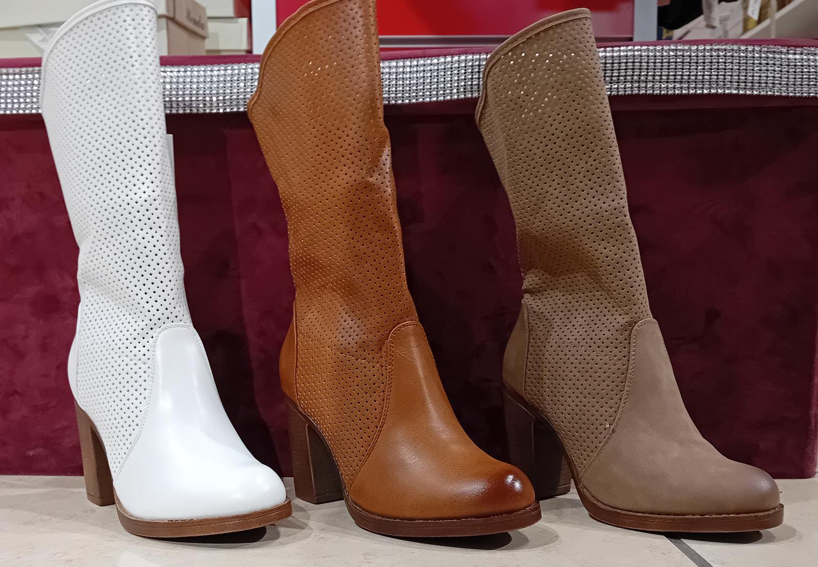 stivale medio estivo in eco pelle con suola di gomma in ben tre colori bianco-tortora-cuoio